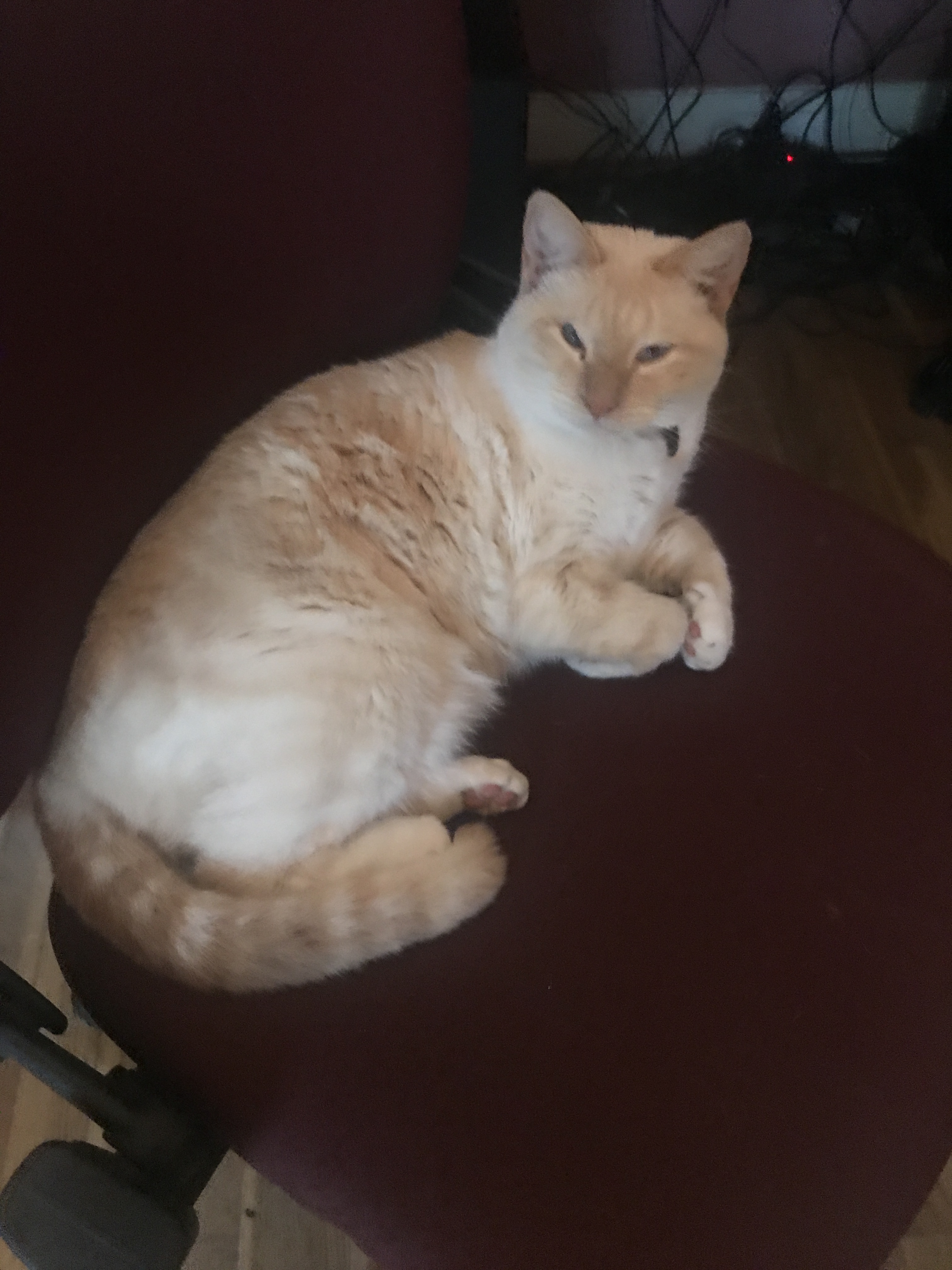 Who am I kidding. Nobody calls this cat Zoser. Babi is our foster fail, and did we ever fail big! It was our first litter for Furrever Cat Rescue and he was just too cute to resist. Babi has been a great addition to the household with the exception that he is loud. He is loud all the time. He meows just to hear his own voice. Fortunately, he is very cuddly so we put up with it! Babi was also born without eyelids. Seriously. It took us a year to know because it kind of presents as a constant eye infection. But once we took him to the eye specialist they did a procedure and now he’s fine even if his eyes are a bit squinty.