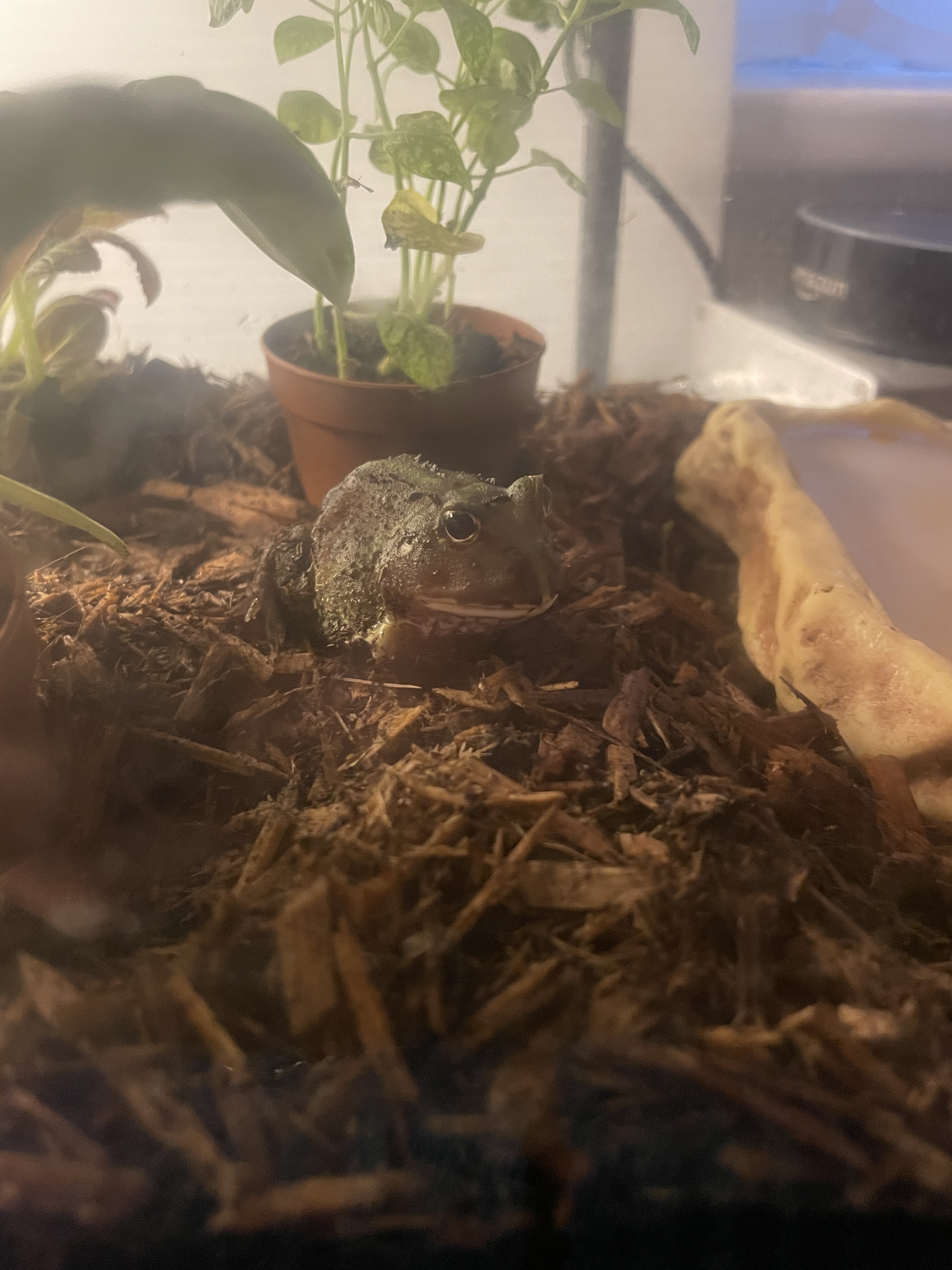 Paxton was acquired at the San Jose Reptile Show in 2023. He is a green apple pacman frog and he basically sits in his aquarium and waits for his food to get close and then he gobbles it down. That’s it! His is a simple life.