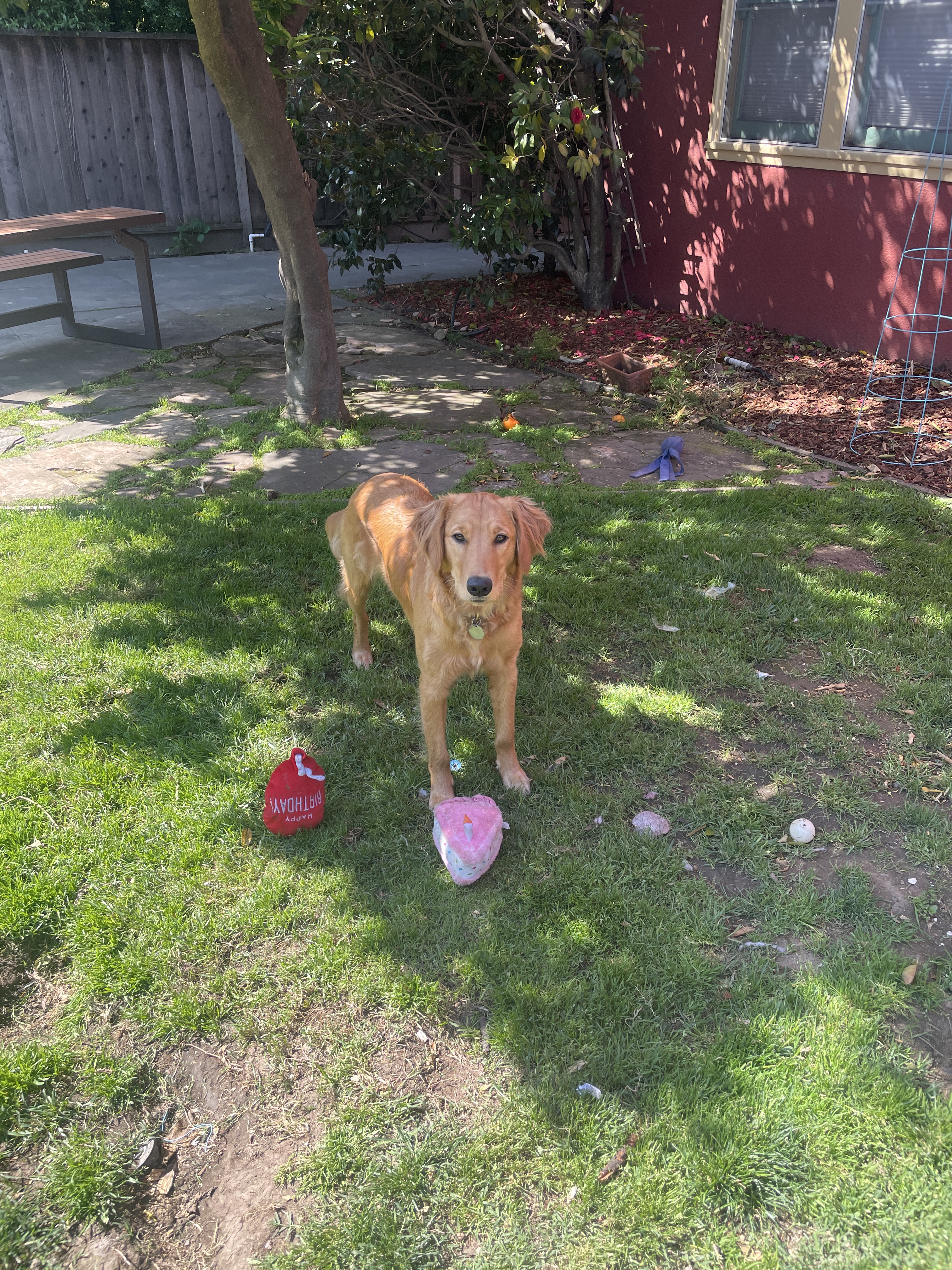 We were lucky enough to acquire Sookie from River Heights Golden Retrievers in Coeur d’Alene, Idaho in July of 2023. We got her at seven weeks, by flying to Spokane and picking her up at the airport. She slept like a good little puppy in her carrier all the way home and has been a good dog ever since. Her favorite things are to cuddle, play with her doggy friends at the park, and play fetch. Oh and to dig but we try to discourage that!