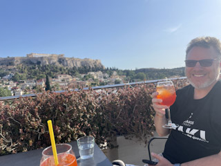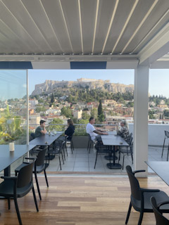 Next we went to the Plaka Hotel and got permission to go up to their rooftop bar. It’s been upgraded since we were there last but still nice. Starting talking to the people next to us but got dismissed because we were American and then an American