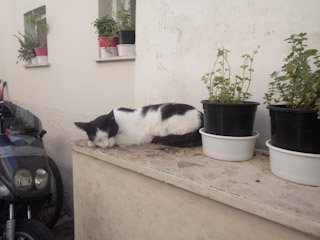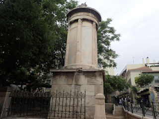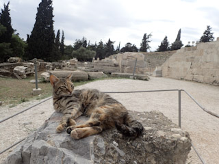 made a beeline over to the little guy but we only wanted to get a video so all was okay. After that, we went to the Tower of the Winds on the backside of the Agora for some good photos. By now it was lunchtime so we went to Ya Zhou for Thai food in a slightly different (and grittier) area of the Plaka, We stopped for iced coffee and then sent Genevieve off on her way to the apartment for an interview (for a job she got and accepted as it happens!)