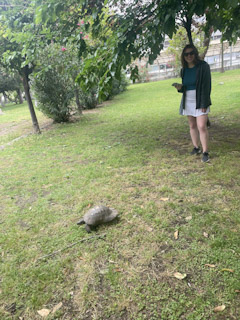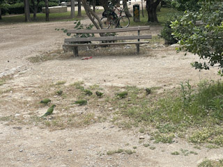 Charlotte and I set out on a quest to get a box and packing materials for her Greek vintage teacups and saucers. DHL told us they don’t sell packing materials but we could go to this other store and she gave us directions but of course, directionally challenged me can’t find anything ever. Fortunately, we stumbled on a couple of stores that sold boxes etc. so whether that was where she told us to go or we got lucky we’ll never know. Found a box and bubble wrap envelopes that were perfect, so we boxed everything up and then met Mark and Genevieve for breakfast at a place near our apartment. Then Charlotte and I walked around the National Gardens of Athens looking at the old ruins, a greek tortoise, and also of course the parrots.
