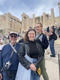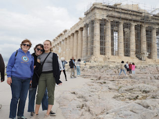 Dublin to Athens, and so we headed back to the apartment and read on the balcony while we waited for them to arrive. Once they arrived and we got their suitcases into the apartment (using the elevator!) we went out to a very nice and fancy lunch, near a cool archeological site. Next, we went to get tickets to tour the Acropolis. Despite the ominous clouds, it was still pretty crowded and I can’t imagine how busy it was going to be later in the summer! We spent way too long trying to get this app to work that theoretically would show you what each temple would have looked like when it was new, and we did get some great photos but truth be told I like the Greek Acropolis in Agrigento, Sicily, better. Maybe because it isn’t as crowded but it seems to have more context. But the Athens one does have more cats so there’s that.