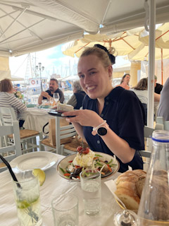 By then it was of course Aperol Spritz hour so we found a likely bar and had our drinks. Charlotte and I returned to the apartment and Mark and Genevieve headed out to the Hamam to get massages. Charlotte and I went to a low-key family restaurant, Victory Cafe, near our place and then texted Genevieve and Mark to come meet us because the owners were so sweet and the food was good. We walked around a bit after dinner and then headed back to the place to watch Bridgerton Season 3!
