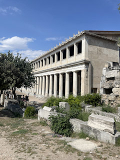 the Metropolitan Cathedral of Athens, and then a stop for a nice lunch at a little cafe. Then we continued our walk to Hadrian’s library. By now Mark and Genevieve were feeling tired so they went back to the apartment and Charlotte and I toured the Agora.
