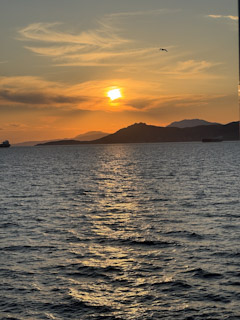 A lot of the stuff that was supposed to be open, like port tasting, wasn’t but that’s okay we did find a good oceanfront restaurant. The ferry back was also very nice with great sunset photos. Once back we watched SNL on my phone, which turns out not to have been the best idea ever as it used all my high-speed data for the trip leaving me with snail speed the rest of the trip (which I did not figure out until we got home, I was just wondering why my phone decided not to work).