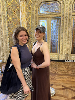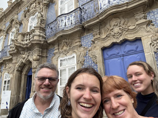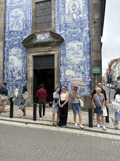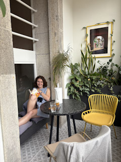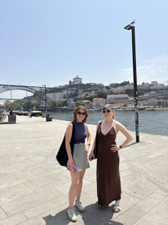 Charlotte and I took the steps all the way down to take the classic photo and then walked back up to meet up with Genevieve and Mark and take the historic asensor back down. Another Bolt to the Raio Palace (worth the 3 euros for sure!). Walked around the palace museum, got some gelato, and took the train back to Porto. We rested in the apartment for a bit, tried the Portuguese drink they’d left for us: