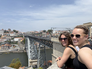 went shopping. Charlotte got a really cute pair of shoes (new, not thrift). Then we went out to try some port. We took the tram across the Dom Luis I Bridge to the other side of the river and then the Teleférico de Gaia down to the riverfront. That in itself was pretty cool. There were many vendors along the river, but while we were there, the