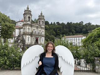 top site in Braga is the Bom Jesus do Monte, a drive or bus ride away. So we went to a nice Japanese restaurant for lunch and then got a Bolt to the church. The driver dropped us off above the cathedral, so Charlotte and I had flashbacks to Sintra, but this time we were actually on the right path. The grounds were really nice, and all the way down to the church there were these little grotto