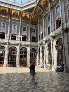 Charlotte and I got up earlier than Mark and Genevieve (shocking!), had a quick breakfast at the apartment, and headed out to the Portuguese Stock Exchange, the Palacio da Bolsa, to get tickets for all four of us for noon. Then we hit up a chocolate store for coffee, which was really good. I had a mocha, of