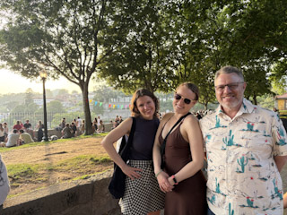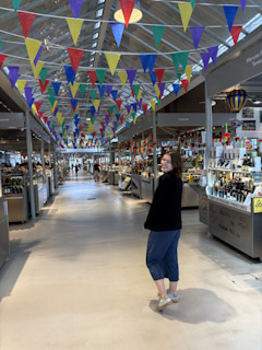 Charlotte, Mark and I all got ready in time to go to breakfast at Copenhagen (of course). We went back to the apartment to grab our stuff and do a quick clean of the apartment. We had assumed we could get a Bolt or a taxi to get to the train station as it was a bit far to walk with our bags but they kept cancelling. We were debating taking the bus (which also wasn’t coming) but then a Tuk Tuk drove by and we flagged him down and asked how much it would cost for him to take us to the train station and he said 30 euros, clearly expecting us to say no. But of course we said yes. He was really a tour guide not a taxi so we got a lot of facts about the city on our drive. Turns out we were missing one of the biggest festivals of the year, The San Antonio Festival, where anyone who lives in the city, including foreigners, can enter a lottery to have their wedding paid for as part of the celebration. They pick 16 couples and everything is included. It apparently goes on all night and that’s what all of the decorations around the city were for. We also found out why the taxis weren’t coming to get us–the road through the downtown area is closed on the weekends so it was nearly impossible for anyone to get through (including buses). Good to know.